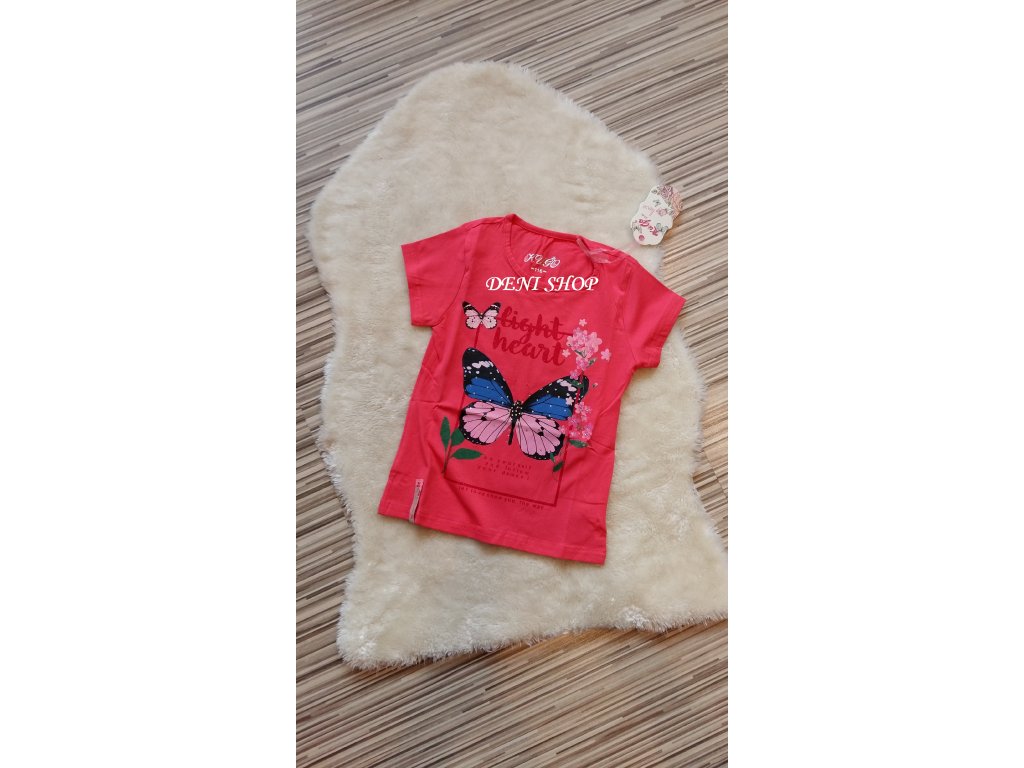 Dívčí bavlněné tričko motýl Kugo šedé různé velikosti