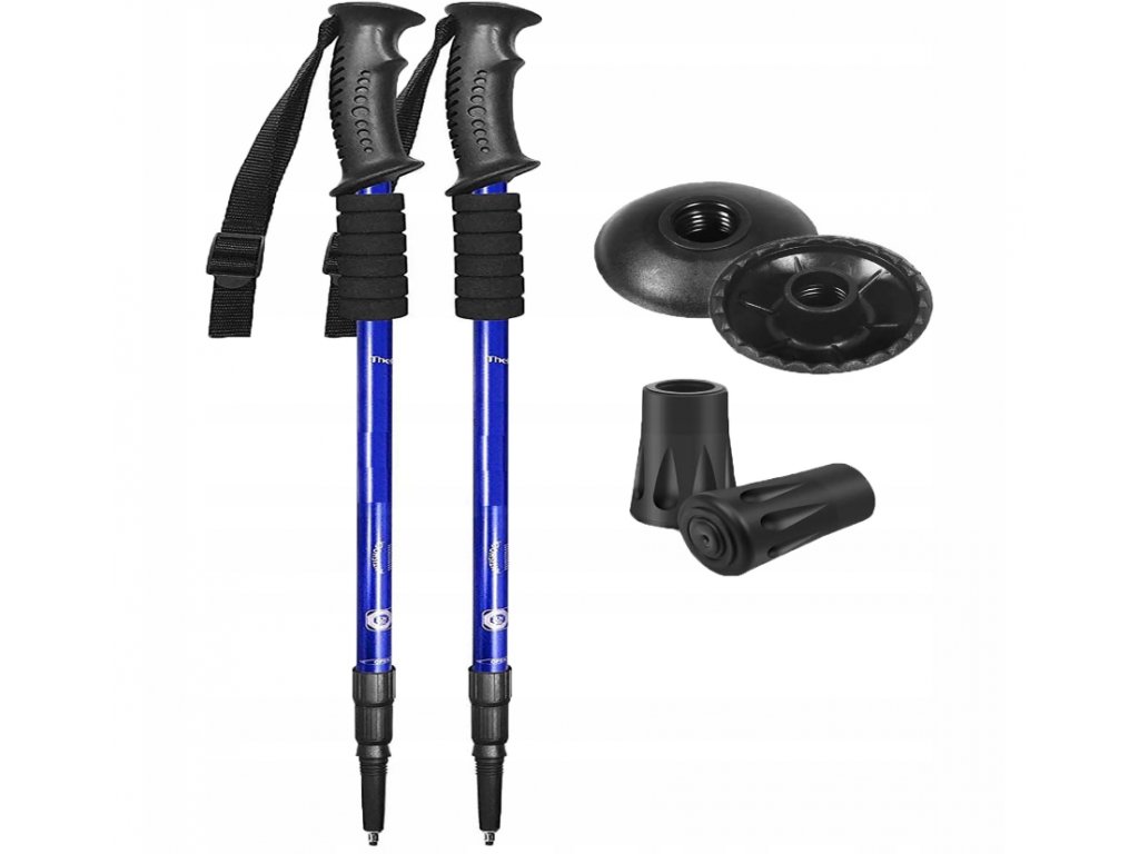 Teleskopické hole na nordic walking - specifikace: nastavitelná délka 67-135 cm, materiál: hliník, ergonomicky tvarovaná rukojeť, tvrzený hrot zajišťuje přilnavost v terénu, mají systém tlumení Antishock, včetně plastové desky pro turistiku ve sněhu, obsahují překryvy, které vám umožní chodit po jakémkoli povrchu, praktický nastavitelný popruh, možnost použití různých tipů,